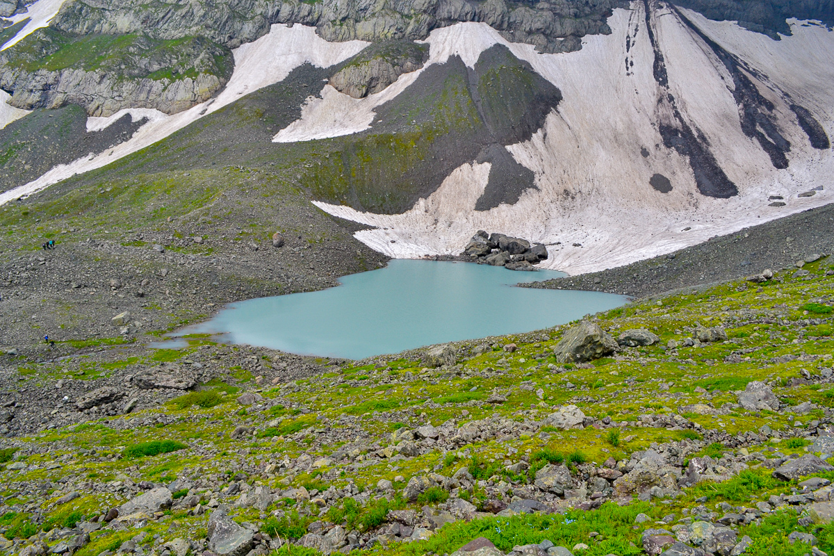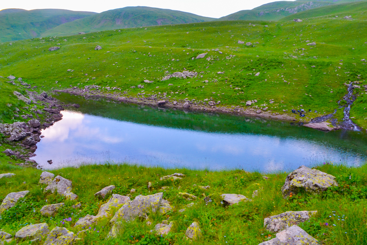 If you wish to spend a night in wild nature and put a camp near the lake, then you definitely have to go to Abudelauri, where you will find not one, but three lakes of different colors. Green, Blue and White lakes are located in the 10 km from village Roshka, Khevsureti Region. The trail which leads to lakes is surrounded by high mountains, crystal clear water springs and flower fields.